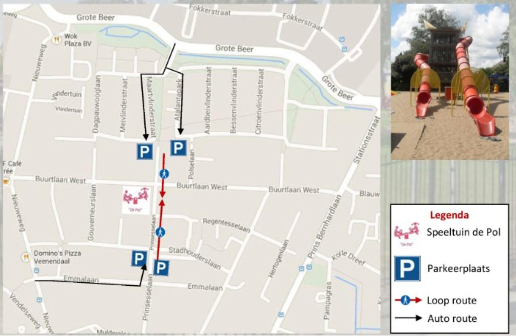 Het is op een kleine loopafstand van de speeltuin
